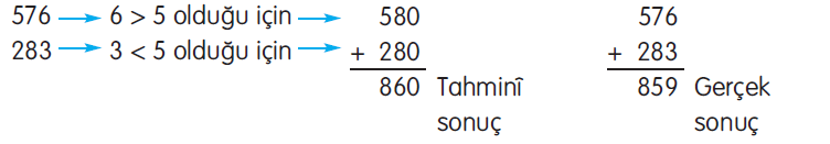 576 + 283 işleminin sonucunu tahmin edip tahminimizi, işlem sonucuyla karşılaştıralım: