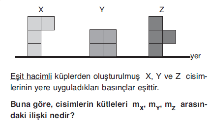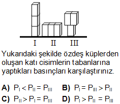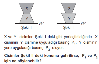 NOT: Ağırlıkları eşit olan iki cisimden yüzey alanı küçük olan cismin basıncı daha büyüktür.