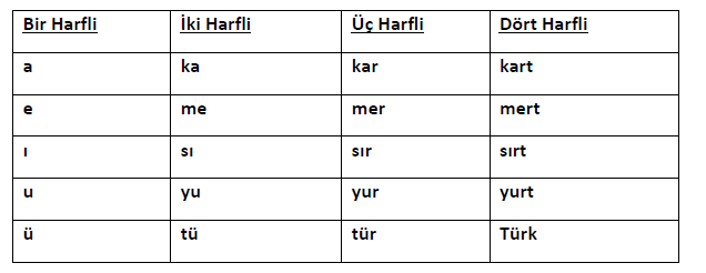 3- Bir hecede en az bir, en çok dört harf bulunur.