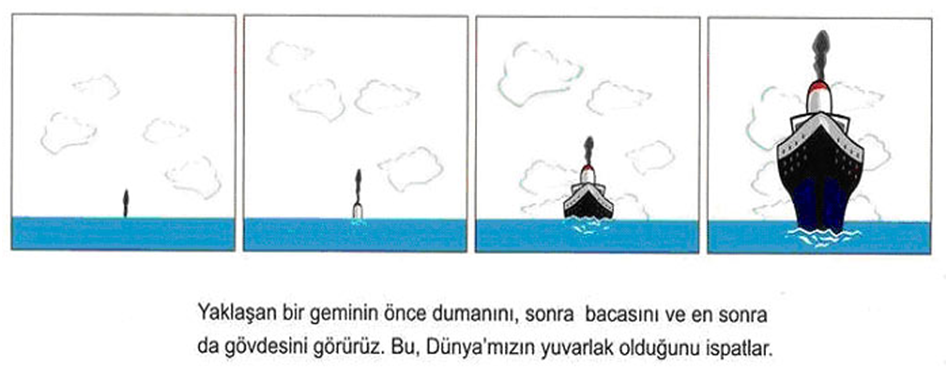 - Uzaktan gelen bir geminin önce dumanını, sonra bacasını ve sonra da geminin tamamını görürüz.