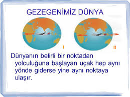 - Dünya’nın her hangi bir yerinden hareket eden uçak hep aynı yöne giderse yine hareket ettiği noktaya gelir.