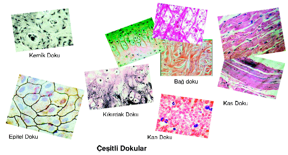 İnsan vücudu da çok sayıda hücreden oluşmuştur. Bu nedenle birçok farklı tipte hücreye sahiptir. Aynı görevi yapmak için özelleşmiş, şekil ve yapı bakımından birbirine benzeyen hücre topluluklarına doku denir. Vücudumuzda kemik doku, kıkırdak doku, kas doku, epitel doku, sinir doku, yağ doku, kan doku, salgı doku gibi dokular vardır.