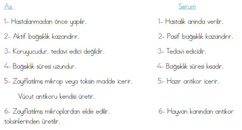 Vücudun, kabakulak, kızamık, kızıl, suçiçeği mikroplarına (virüsler neden olur) karşı ürettiği antikorlar ömür boyu vücudu korur.